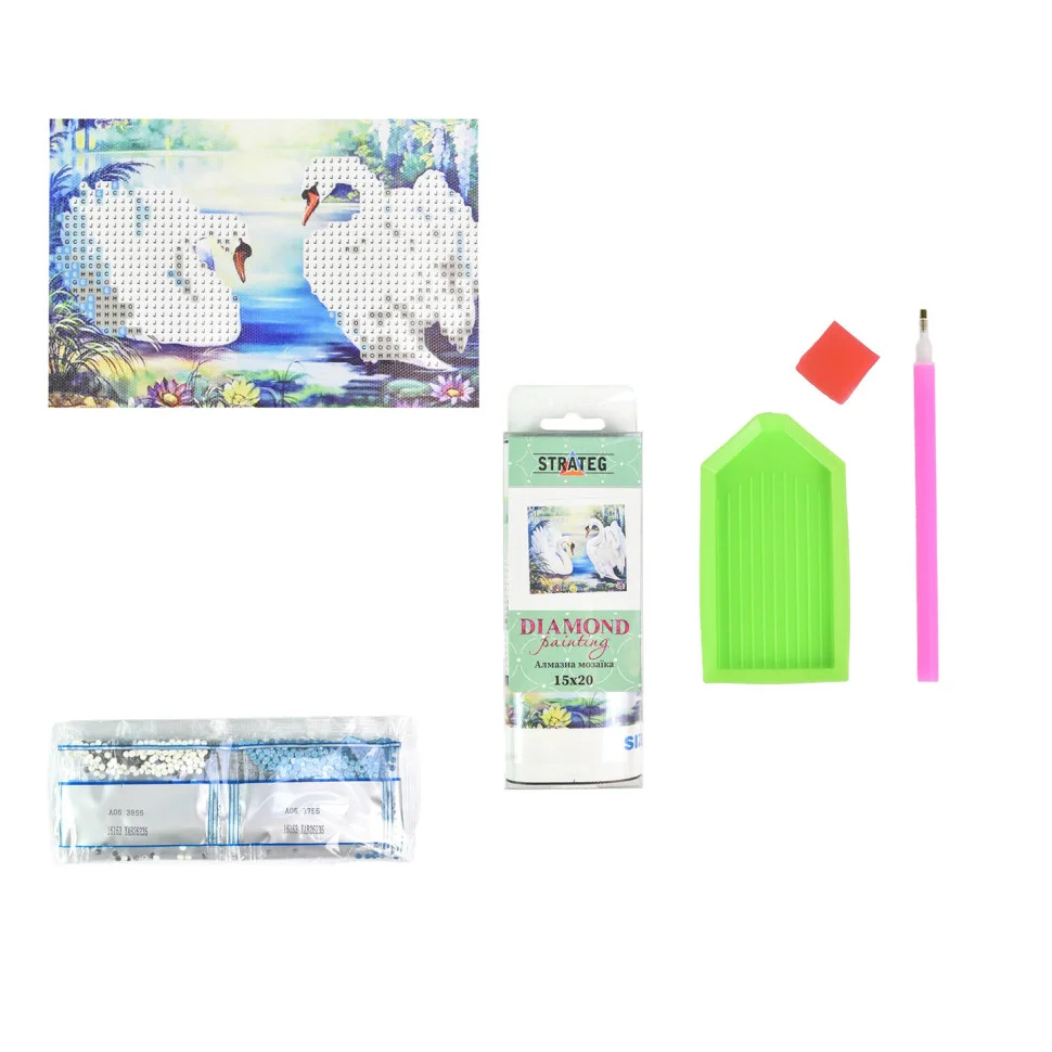 Алмазна мозаїка Strateg ПРЕМІУМ Лебеді на воді без підрамника розміром 10х15 см (YAB24667)