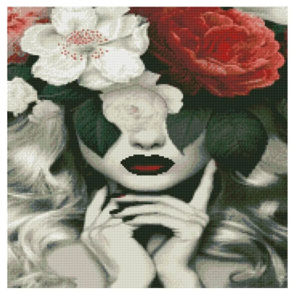 GA0013 «Дівчина з квітами» від ТМ Strateg – це Алмазна мозаїка Strateg ПРЕМІУМ, яку ви створите за допомогою камінчиків різного кольору, викладаючи їх спеціальним олівцем на самоклеючу схему-малюнок.