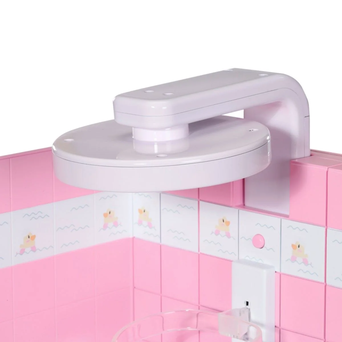 Зустрічайте неймовірно стильний та сучасний аксесуар для вашої улюбленої Бебі Борн - автоматична душова кабінка для ляльки BABY BORN - КУПАЄМОСЯ З КАЧЕЧКОЮ! Тільки подивіться наскільки вона реалістична і, водночас, виконана у фірмовому стилі Бебі Борн! Висота душу регулюється. Залийте воду до піддону кабінки, закріпіть лялечку, поверніть важіль у вигляді качечки - і водичка поллється! Це так зручно і весело!