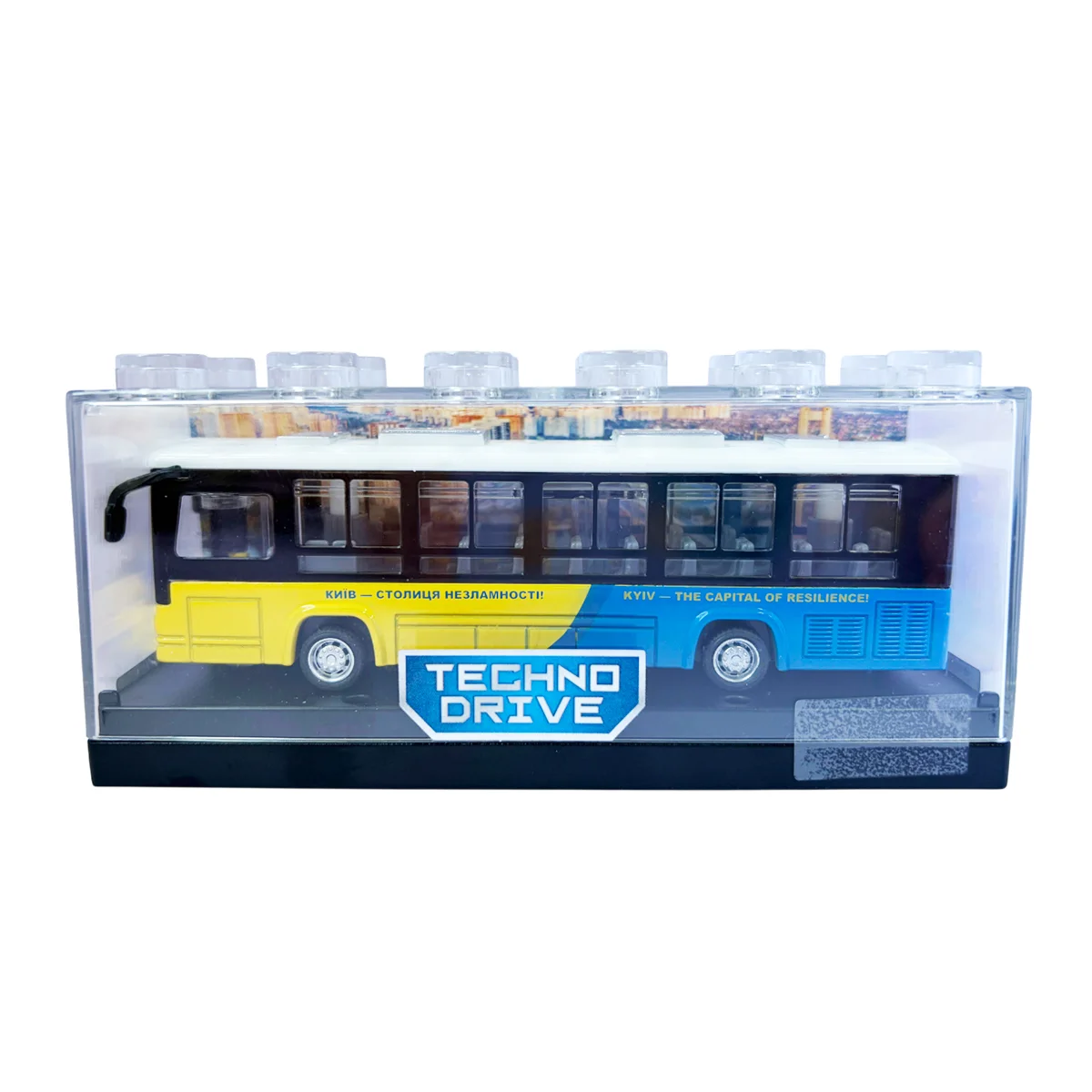 - Деталізований дизайн автобуса виконаний у патріотичних кольорах.