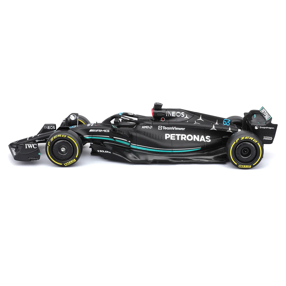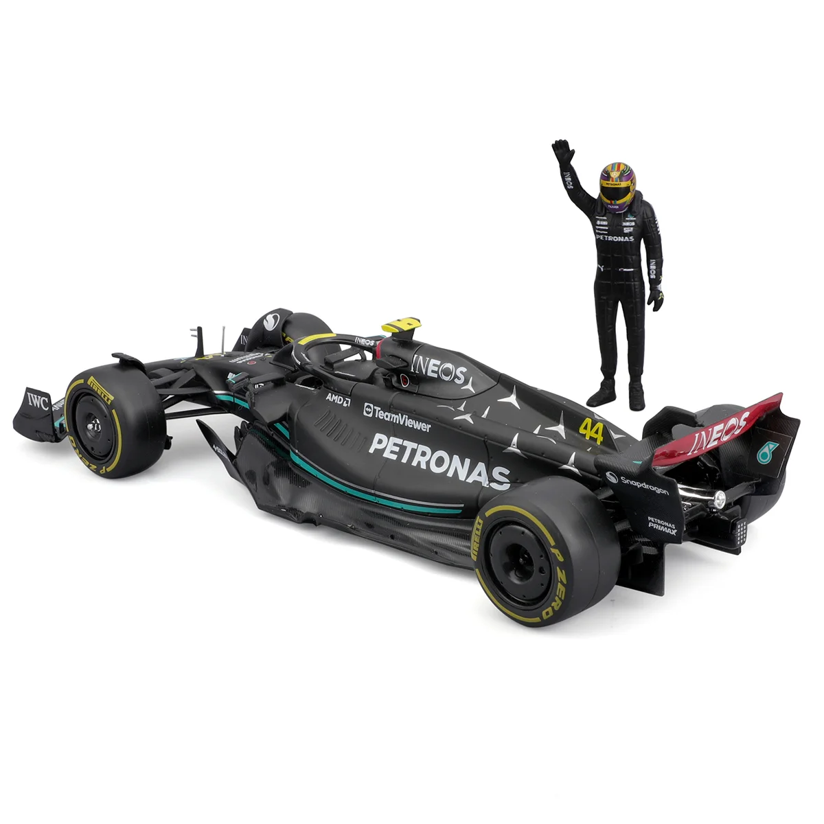 В асортименті представлено 2 варіанти автомоделей з фігурками: Льюїс Гамільтон під номером 44 та Джордж Расселл під номером 63.