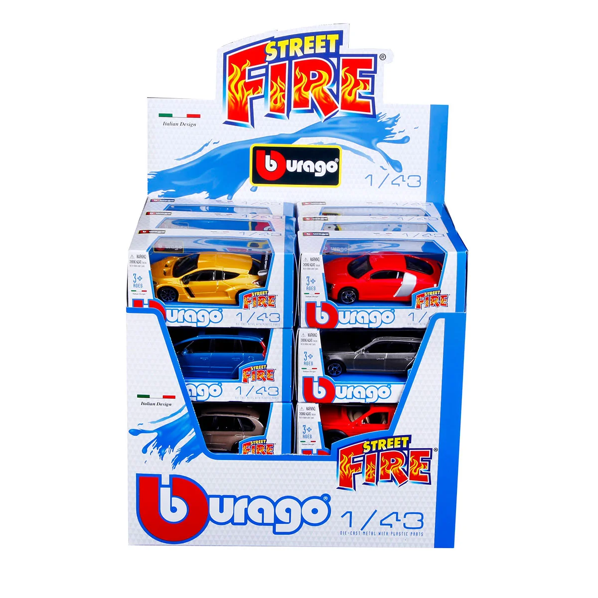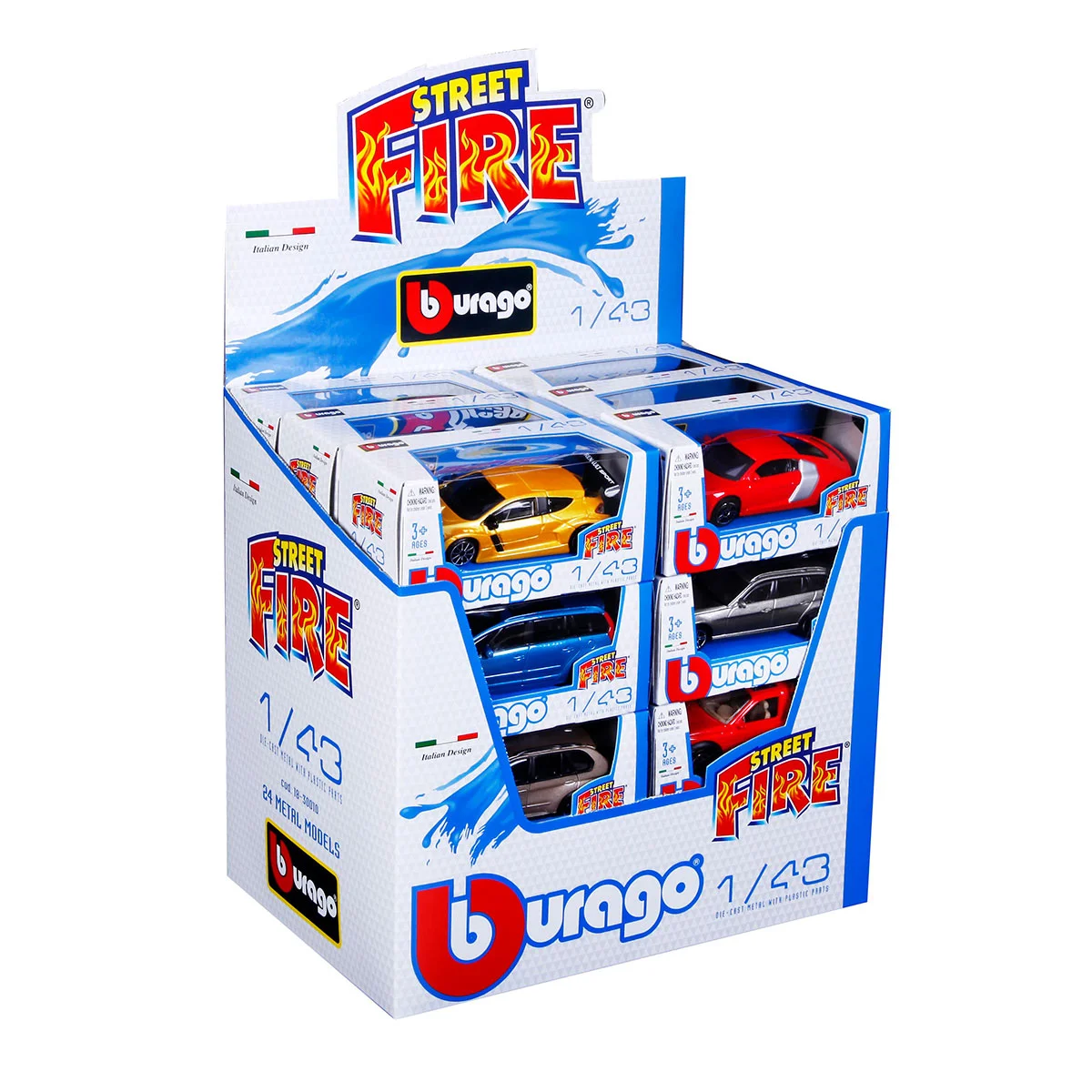 У блакитному диспенсері представлено 24 масштабовані металеві моделі автомобілів серії "Street Fire" 12 (дванадцяти) видів.