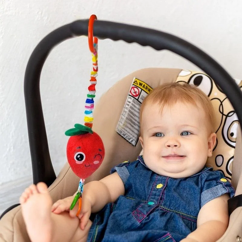 Брязкальце-підвіска Полуниця - яскрава, м’яка та абсолютно безпечна іграшка для маленьких «дослідників».