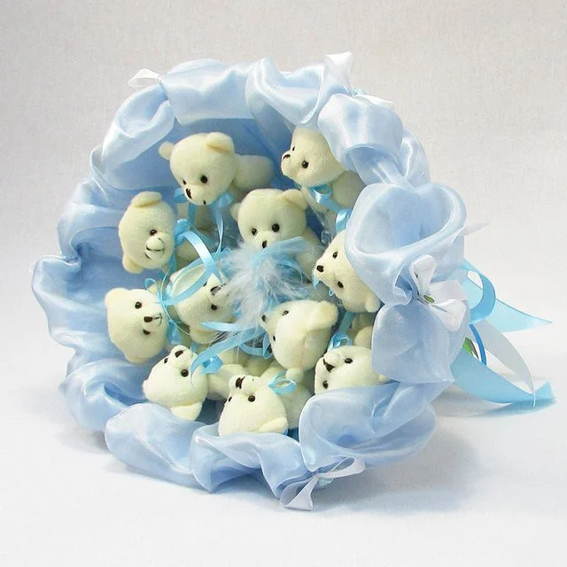 ВАЖЛИВО! Дані букети виготовляються під замовлення, тільки по передоплаті. Термін виготовлення 1-2 дні. Поверненню та обміну не підлягають.Букет з іграшок Ведмедики 11 небесно-блакитний Арт. 5285 Букет з іграшок Ведмедики 11 небесно-блакитний складається з білих ведмежат. Мишка дуже милі, шийка кожного з ведмежат прикрашена бантиком. Ведмедики розташувалися в два кола, між ними - красива сіточка. Зовні композиція виконана в ніжно-блакитному кольорі, прикрашена намистинками і бантиками. Ручка букета перев'язана атласними стрічками. Ефектний, незвичайний і ніби невагомий букетик просто змушує в нього закохатися. Він ідеально передасть всю теплоту і ніжність. Композиція складається з 11 ведмедиків. Розміри букета 35х35 см. При відправці Новою поштою букет пакується в коробку з об'ємною вагою 5 кг. Оскільки композиція є авторською, повторити її двічі до найдрібніших деталей неможливо, деякі елементи декору можуть бути змінені, при цьому зберігається загальний стиль композиції. ВАЖЛИВО! Дані букети виготовляються під замовлення, тільки по передоплаті. Термін виготовлення 1-2 дні. Поверненню та обміну не підлягають.