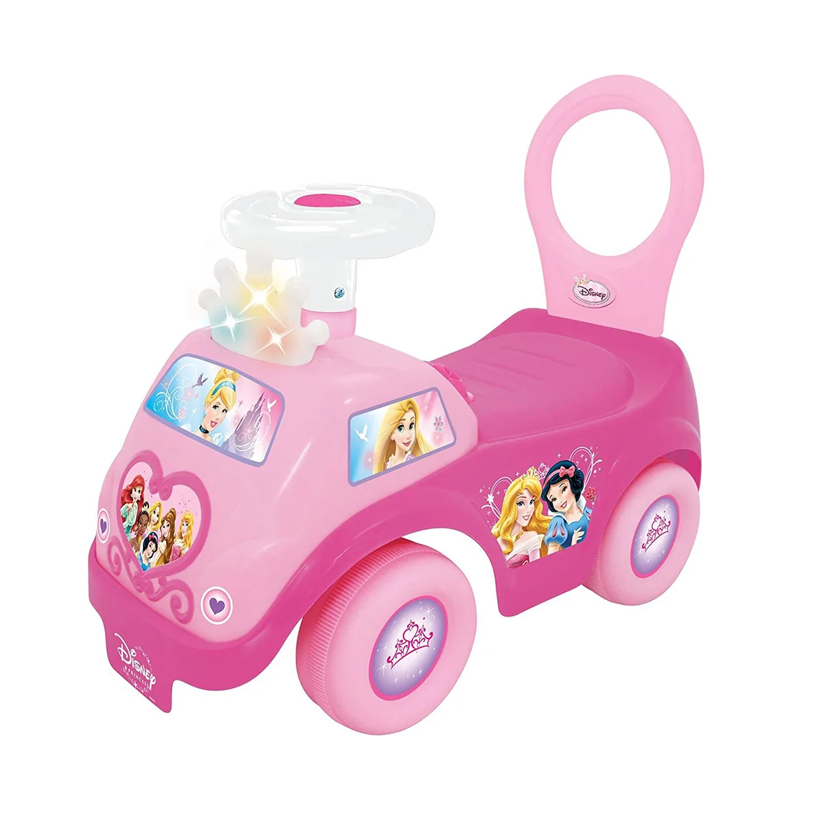 Яскравий чудомобіль, виконаний в стилі популярних принцес студії Disney, подарує дитині море позитивних емоцій від катання та гри з персонажами мультфільмів.