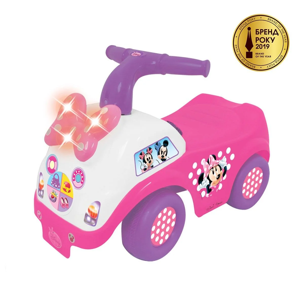 Чудомобіль-міні Мінні-Маус розважить дитину приємними мелодіями, реалістичними звуками двигуна і сигналу, миготливими вогниками поворотів.