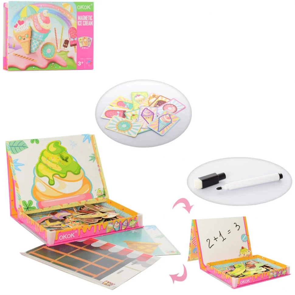 Дерев'яна іграшка Пазли MD 2815 магнітні, картинки, маркер, 4 види транспорт, солодощі, космос, будмайданчик, в кор-ці. Матеріал: дерево.