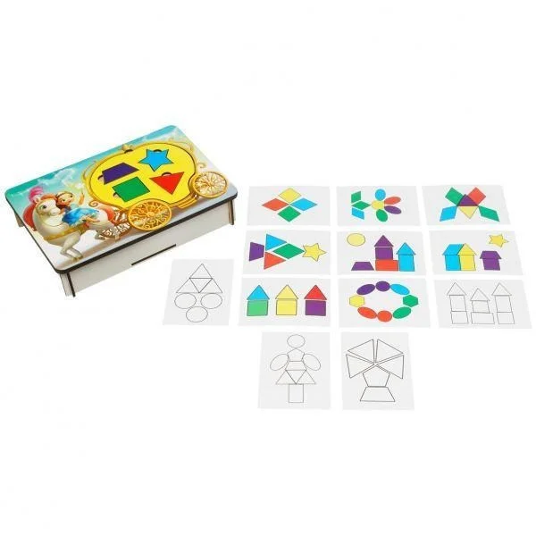 Розвиваюча гра у вигляді карети з віконцями з різних фігур. Карета - це змінні основи 5-ти кольорів. Малюкові необхідно вставити різнокольорові фігури в карету потрібного кольору за подобою. Також з фігур можна викласти багато різних візерунків, персонажів, абстракцій. Ця гра - відмінний помічник у вивченні фігур, рахунку та кольорів. Запропонуйте дитині придумати для феї ім'я і тоді грати стане ще цікавіше.