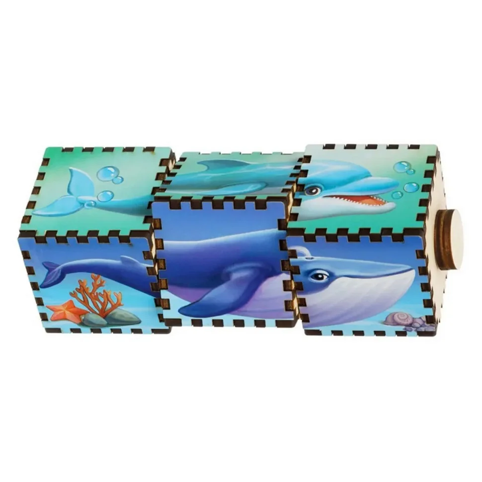 Гра складається з стрижня, на якому розташовано три обертових кубика. Необхідно зібрати кита, дельфіна, акулу і пароплав, покрутивши кубики і вибравши відповідні хвостик, тулуб і мордочку. Кубики відмінно тренують пам'ять, розвивають логічне мислення, увагу і дрібну моторику у дітей.