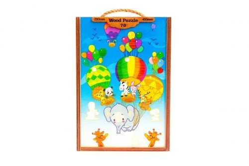 Яскраві дерев'яні пазли. Пазл складається з 70 досить великих деталей. Розмір картинки - 28х40 см. Упакований пазл в красиву дерев'яну коробочку.