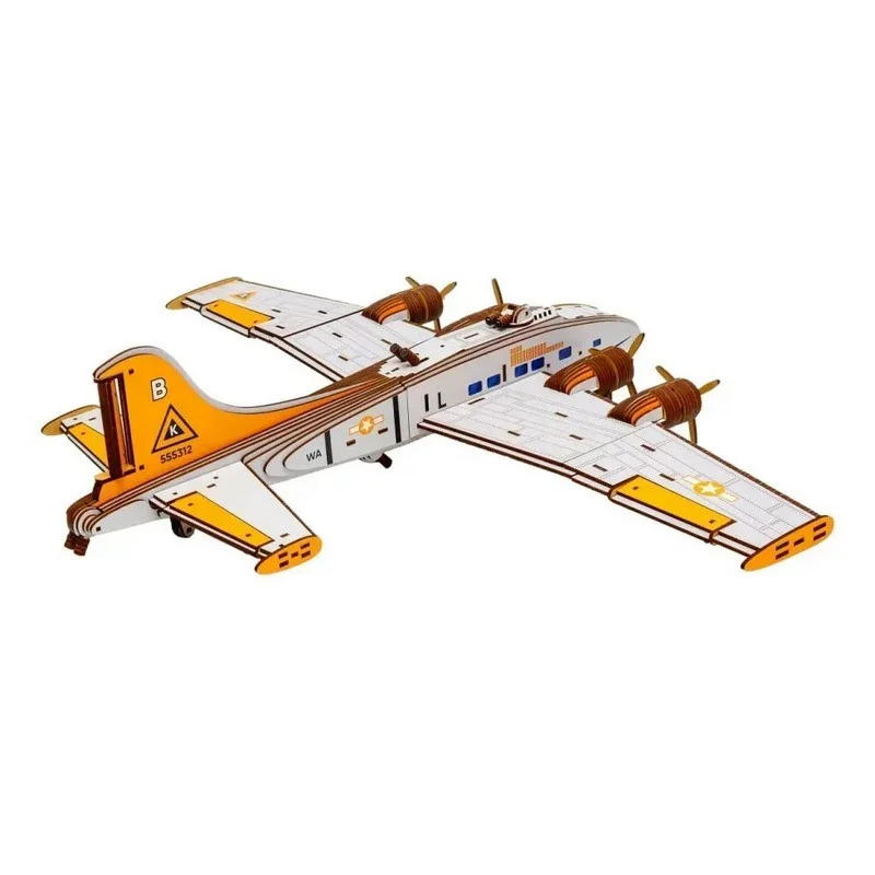 Кольоровий дерев'яний 3D конструктор "Бомбардувальник – Літаюча фортеця" — це захопливий набір для дітей та дорослих, які люблять моделювання та техніку. Конструктор складається з деталей, виготовлених з якісного дерева, пофарбованого барвниками.
