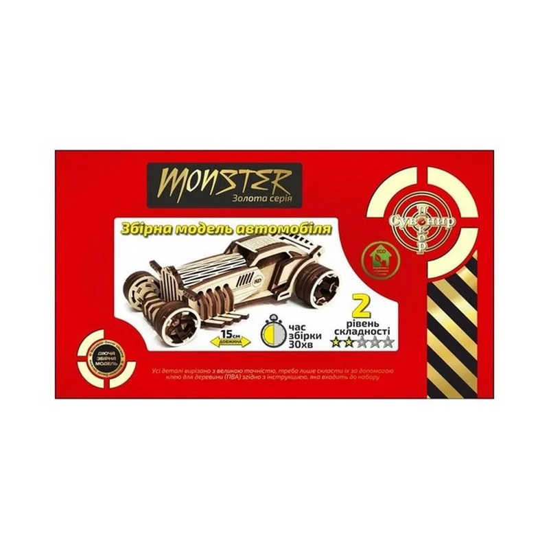 Дерев'яний конструктор 3D-пазл автомобіль, дає змогу зібрати тривимірну модель автомобіля Monster.