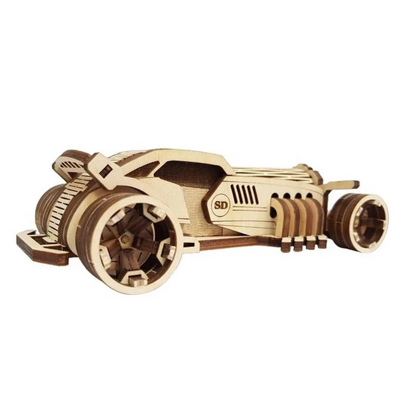 Деталі авто виготовлені з міцної якісної фанери, добре деталізовані.