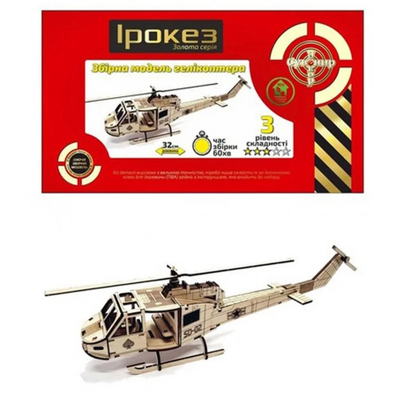 Дерев'яний конструктор «Вертоліт». Модель з фанери для самостійного складання - для складання необхідний клей ПВА, або будь-який інший клей для дерева.