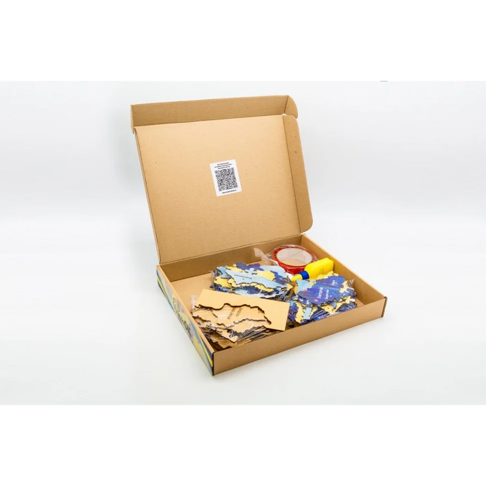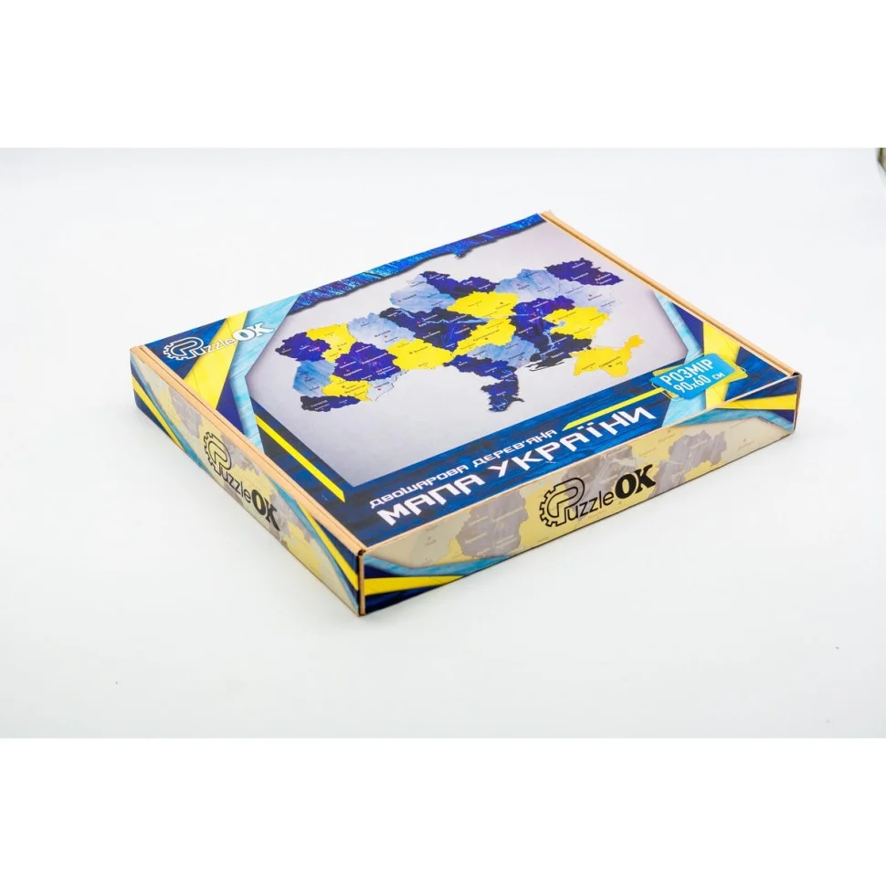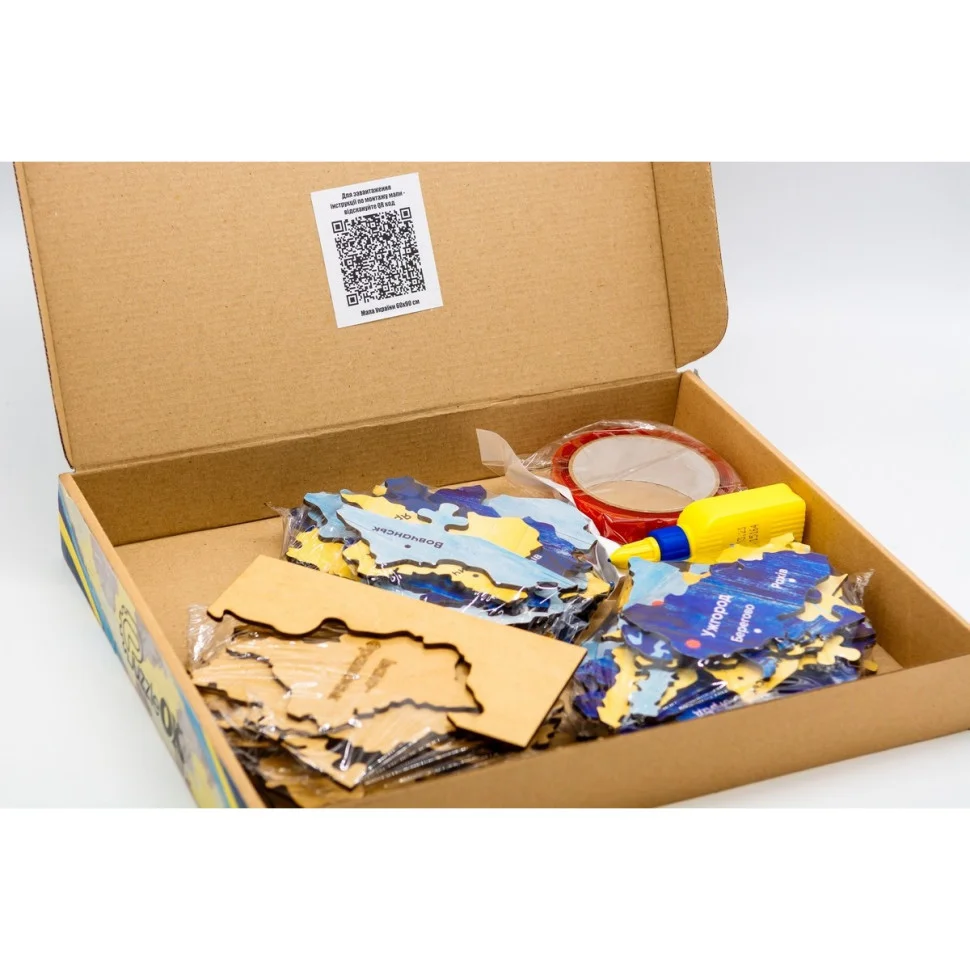 Двошарова мапа виконана з натурального екологічно чистого матеріалу, складається з окремих елементів як пазл. До комплекту входять деталі пазла, клей та скотч для закріплення.