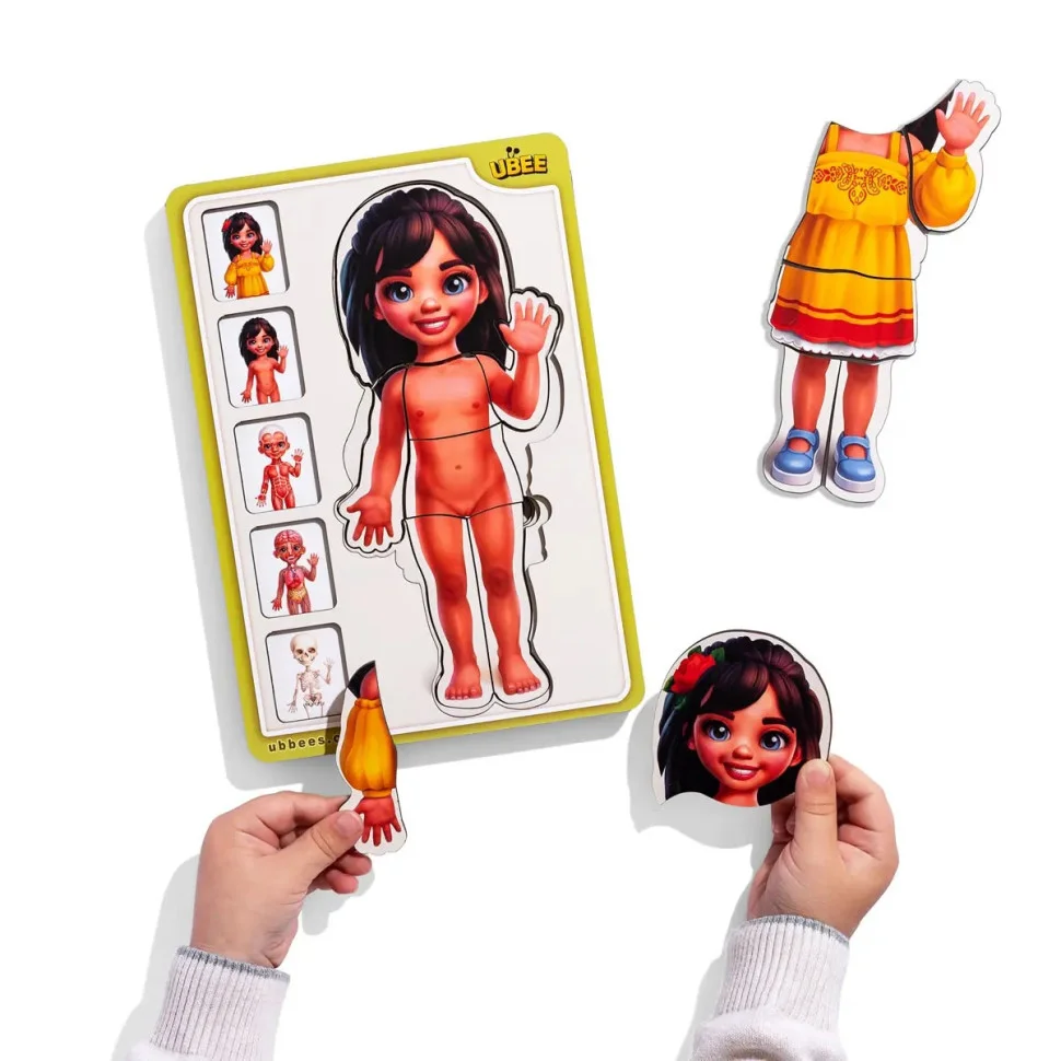 Дерев'яний багатошаровий сортер Анатомія людини дівчинка від Ubumblebees – навчальний посібник у формі гри!
