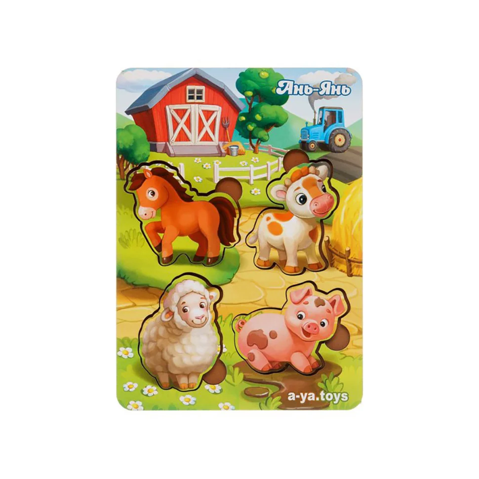 Дерев'яний пазл-вкладиш "Сім'я-свійські тварини-2" Ubumblebees (ПСФ003) PSF003 більше-менше