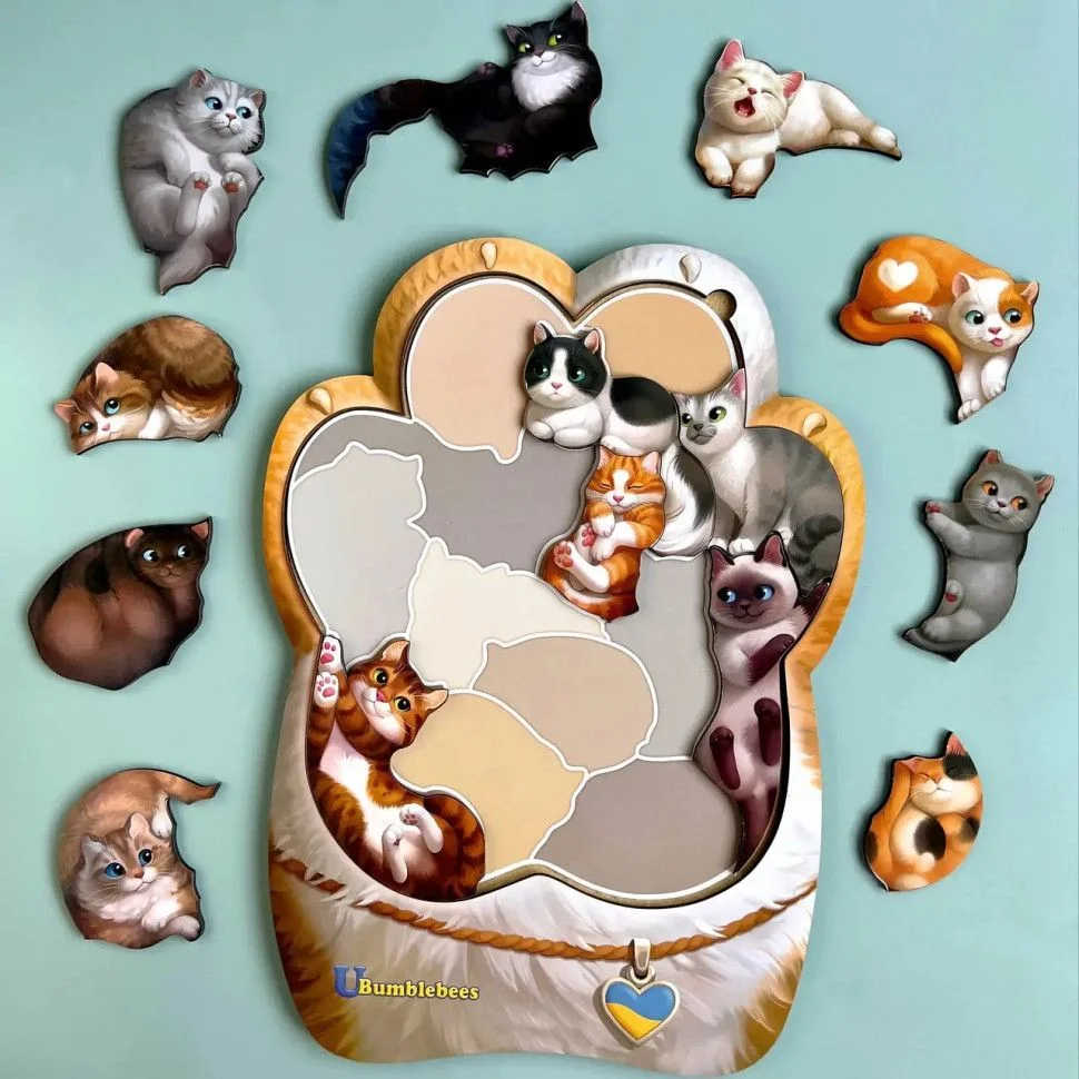 Вашi дiти обожнюють котиків? Тодi ця гра саме для Вас: 14 милих котикiв чекають зустрiчи з Вашим малюком. У наборi вкладиш-пiдказка, щоб дитина могла по тiнi шукати вiдповiдного котика. Коли дитина навчиться, то ускладнити завдання можна, знявши пiдказку.