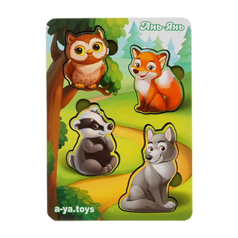 Дерев'яний пазл-вкладиш "Звірі на лісовій галявині" Ubumblebees (ПСД177) PSD177, 9 деталей
