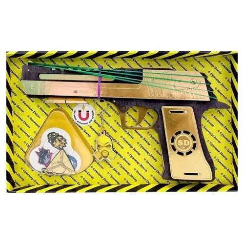 Комплектація: Пістолет, резинки для стрільби, 2 дармовиса та та наклейки