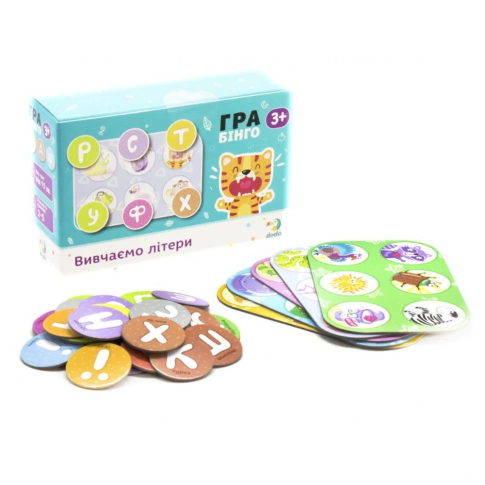 Бінго DoDo Вивчаємо літери 300197 - одночасно корисна і цікава забава, яка неодмінно припаде до душі вашому маленькому чомучки. Рекомендований для діток старше 3-х років, захоплюючий набір включає в себе все необхідне для вивчення букв. Перед самим початком гри кожен учасник отримає спеціальну картку, з унікальним набором зображень. Після цього ведучий по черзі дістає фішки і називає вголос букву, яка на ній намальована. Учасники намагаються якомога швидше відшукати на своїй картці звірятко або предмет, який починається на цю букву, а потрібний малюнок закривається фішкою. Головна мета гри - встигнути першим заповнити всі картинки на своїх картках, і стати переможцем змагання. В ході гри дитина розвиває координацію рухів, уважність, стає більш спритним, самостійним і цілеспрямованим. Настільна гра виготовлена з екологічно чистого картону, і рекомендована для дітей віком від 3 років. У комплекті містяться всі необхідні приналежності, включаючи 5 спеціальних карток і 30 фішок.