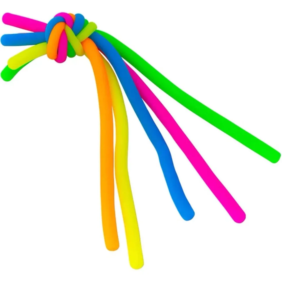 Така різнобарвна локшина подарує дитині масу позитивних емоцій, адже її можна тягнути, розтягувати, скручувати і стискати. А можна сплести з неї величезну косу. Роби все, що підказує фантазія. Така іграшка допоможе розслабитися і попрощатися зі стресом і напругою.