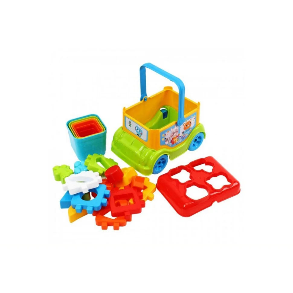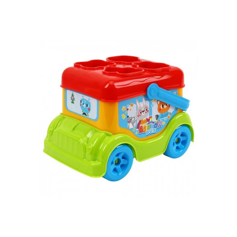 Це багатофункціональний автобус-сортер - в ньому можна сортувати фігурки тваринок, гратися кубиком та геометричними формочками, будувати пірамідку, возити улюблені іграшки. А ще його дуже легко переносити, оскільки є зручна ручка, яка допоможе це зробити. Іграшку зручно брати із собою на прогулянку, на природу, в садок, чи просто гратися вдома. А коробка яскрава та красива, що сподобається і дітям, і дорослим та надасть іграшці "подарункового" вигляду.