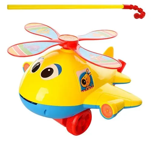 Каталка Вертоліт на палиці буде цікава діткам, які тільки навчилися ходити або ходять давно. Каталочка яскрава і привертає малюка. Розмір 41см. Вертоліт зі звуком, при русі обертаються гвинти і висовується язик.