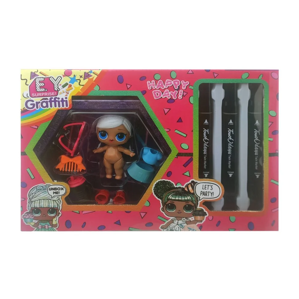 Мила маленька лялечка виконана в сучасному стилі, який сподобається будь-якій дівчинці. У комплект з лялечкою входить: - лялька; - маркери; - Аксесуари.