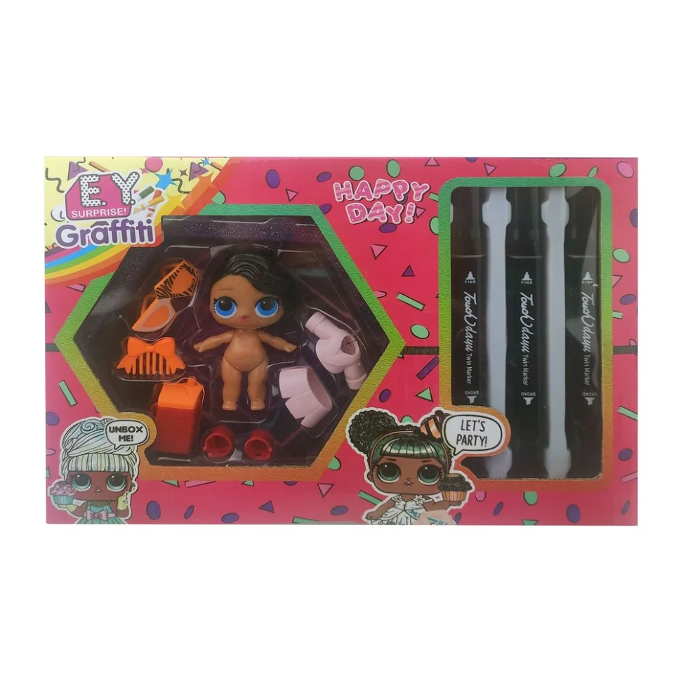 Мила маленька лялечка виконана в сучасному стилі, який сподобається будь-якій дівчинці. У комплект з лялечкою входить: - лялька; - маркери; - Аксесуари.
