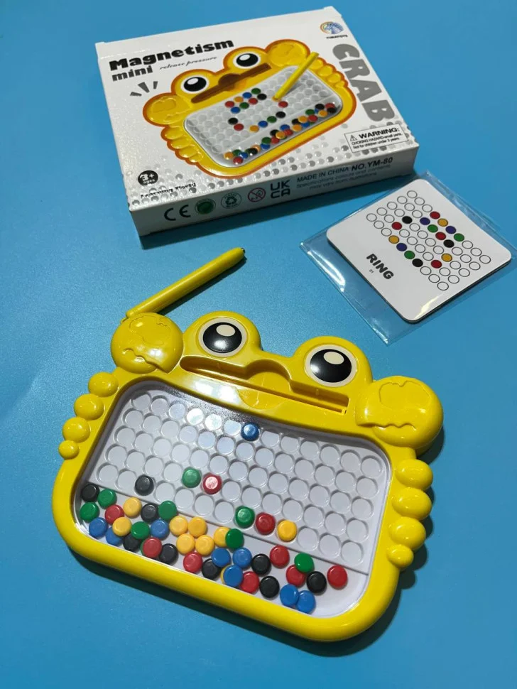 Пориньте в захопливий світ творчості з дитячою магнітною мозаїкою! Цей набір містить безліч різнокольорових магнітних елементів, які легко кріпляться до магнітної дошки, даючи змогу створювати яскраві візерунки, картинки і навіть цілі історії. Ідеально підходить для розвитку дрібної моторики, уяви та творчих здібностей дитини.
