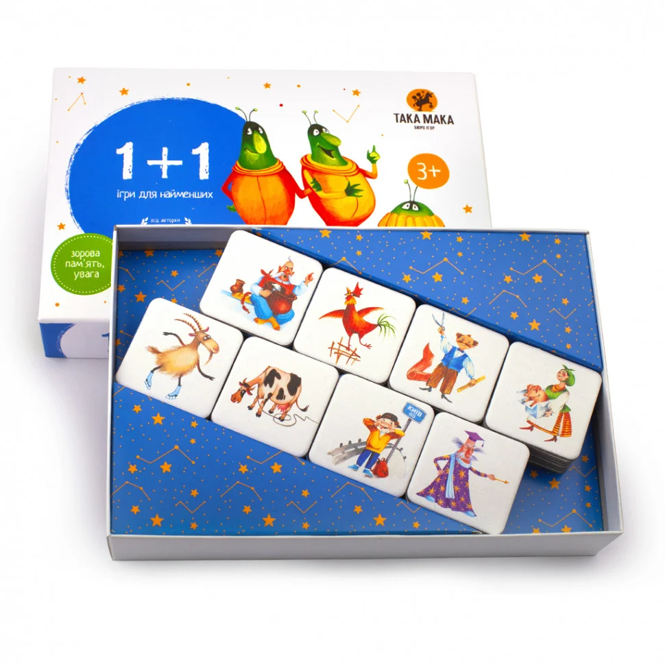 Захоплююча настільна гра "1 + 1" 960063 - захоплююче полювання за 32-а парами однакових карток, яке неодмінно сподобається діткам старше трьох років. Цікаве розвага стане улюбленою забавою Вашої дитини, посприяє розвитку образного і логічного мислення, допоможе йому поповнити словниковий запас і розширити кругозір. Оригінальна універсальна гра позитивно впливає на посидючість, концентрацію уваги, кмітливість і винахідливість. Дитячий комплект виготовлений з екологічно чистої сировини, без застосування токсичних барвників, здатних викликати у Вашої дитини алергічну реакцію, тому Ви можете не хвилюватися про безпеку покупки. Цікава настільна гра стане прекрасним приводом, щоб провести час з рідними в приємній, дружній атмосфері з користю для розвитку. Розвиваючий набір створений за мотивами підручників, призначених для розвитку логічного мислення "Планета міркувань" Ольги Гісь.