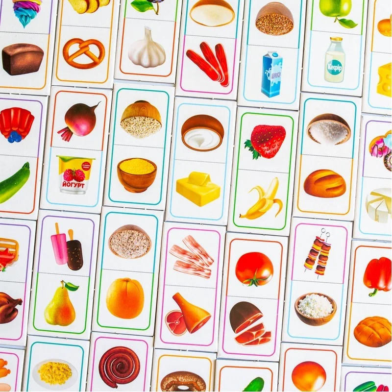 Гра сприяє формуванню навичок класифікації: діти вчаться розрізняти продукти за групами - молочні, м’ясні, овочі, фрукти, солодощі, гарніри, хлібобулочні вироби. Кожна група має свою кольорову рамку - це зручно та наочно.