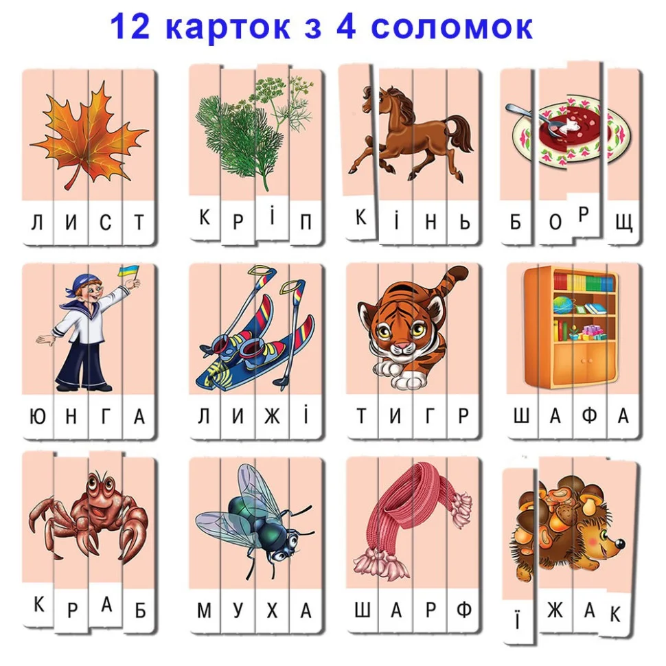 "Ерудит" Склади слово. Вип.3 (укр.) 87246 - ігровий комплект, в який входить 32 картки - 96 соломок (8 карток на 3 букви, 12 карток на 4 букви, 12 карток на 5 букв з картону 2 мм. Якщо Ви перебуваєте в пошуку інтелектуального розваги для свого непосиди, то цей чудовий набір створений спеціально для Вас. При досить прості правила, така розвага змушує думати і планувати свої дії наперед, що позитивно вплине на розвиток самостійності і цілеспрямованості у Вашої дитини. для виготовлення набору виробник використовував виключно екологічно чистий, безпечний матеріал - ущільнений картон товщиною 2 мм , що гарантує довговічність експлуатації і привабливий зовнішній вигляд гри. Абсолютно безпечна і захоплююча настільна гра посприяє розвитку логічного і асоціативного мислення, уяви, уважності і кмітливості. Така забава підніме вашому малюку настрій, допоможе йому в ігровій, приємній формі розвивати безліч корисних якостей.