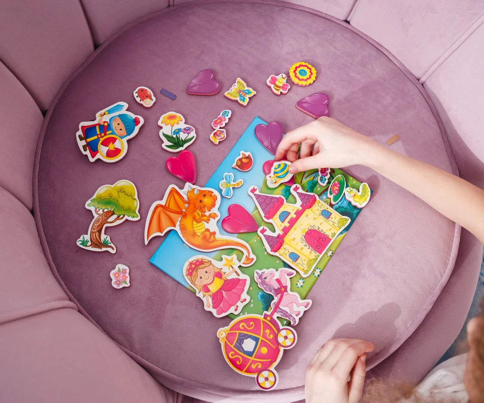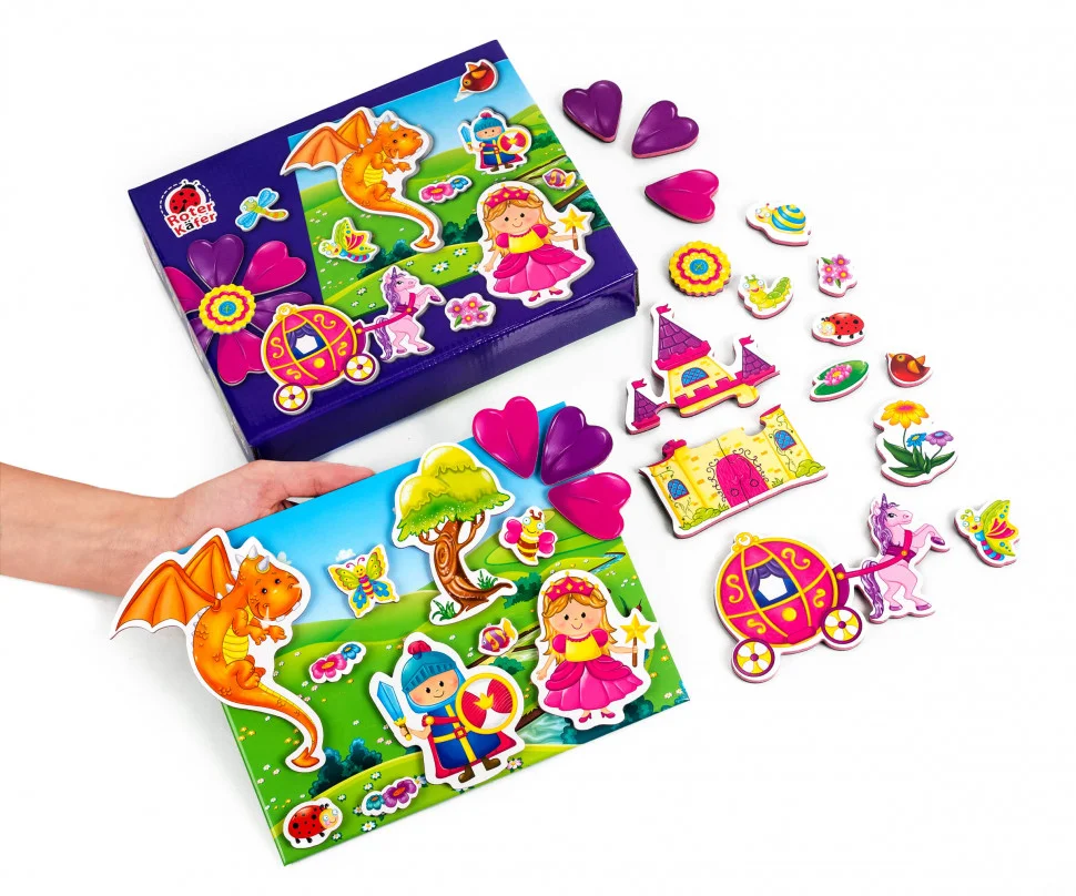 Призначена для дітей старше трьох років, цікава гра настільна "Магнітна гра. Принцеса і лицар" укр. RK2070-01 - чудовий вибір в якості подарунка для малюка старше трьох років. У комплекті Ваша дитина знайде спеціальну магнітну дошку, із зображеним на ній сюжетом, і 30 тематичних магнітів. Прикріплюючи деталі до дошки, Ваш малюк буде створювати свою неповторну історію, придумуючи нові події, розповідаючи їх один одному. Все магнітики відрізняються продуманим розміром, і є об'ємними, щоб малюку їх було зручно кріпити і знімати з дошки. В процесі гри Ваша дитина буде тренувати навички запам'ятовування, уяву, аналітичне, просторове і логічне мислення, мова і дрібну моторику. Створюйте казку своїми руками разом з малюком, і його радості не буде меж. Ігровий набір розроблений з екологічно чистої сировини, абсолютно безпечного для дитячого здоров'я. Казкова тематика робить набір вдалим вибором для дівчинки старше трьох років.