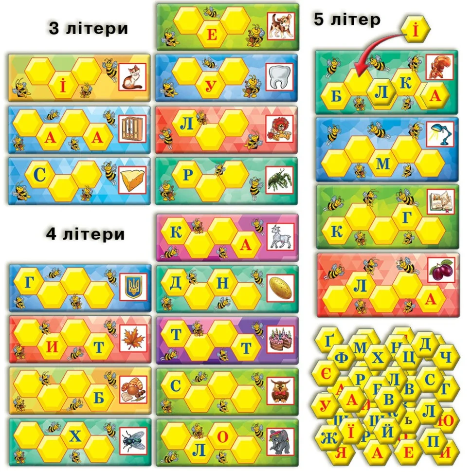 Цікава гра «Склади слово з бджілками" в кор. 82609 представлена в новій розвиваючій серії для найвимогливіших маминих капризників. Захоплююча дидактична, рекомендована настільна гра для дітей дошкільного та молодшого шкільного віку старше трьох років, в ігровій манері допоможе Вашій непосиді вивчити цифри і склад чисел. В процесі виконання завдань Ваш малюк самостійно навчиться вважати в прямому і зворотному порядку, а також виконувати арифметичні дії в межах десяти. Дитина зможе вивчити не тільки основи арифметики, але і розвине логічне мислення, увагу, уяву, навички пам'яті. Навчальні ігри корисні для поліпшення спостережливості, розвитку кмітливості, дрібної моторики пальчиків. У комплекті міститься 16 полів, 24 картки. Цікава дитяча гра поєднує в собі продуманий дизайн, відмінне наповнення і чудова якість виготовлення від української торгової марки «Енергія Плюс».
