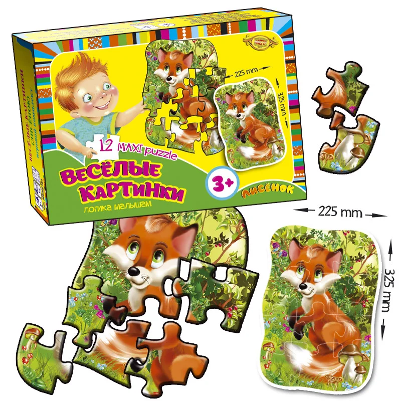 Збери симпатичного ЛИСЕНКА з 12 картонних максі-пазлів (розмір картинки 325 * 225 мм).