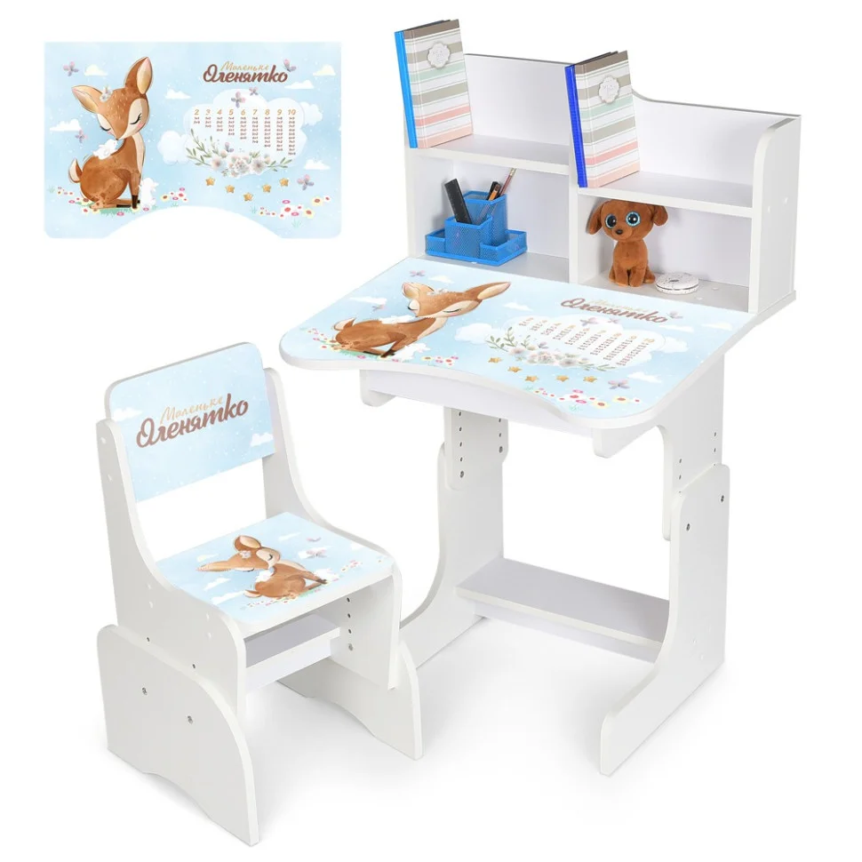 Дитяча парта 2071 має надбудову з поличками для книжок, для зручності користувача в нижній частині столу розташована підставка для ніг. Дитяча парта 2071 виготовлена з матеріалів високої якості, фарби, які використовували для її фарбування, зроблені на водній основі, нетоксичні та безпечні для здоров'я. Парта являє собою красиву, якісну і комфортну модель, за якою ваша дитина зможе робити уроки, займатися творчістю, грати і їсти.