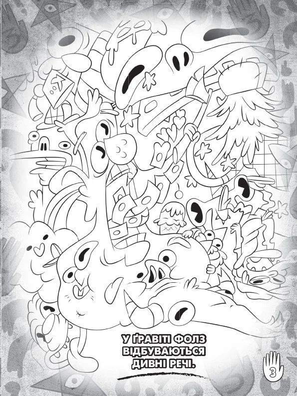 Зустрічай улюблених персонажів "Гравіті Фолз" на сторінках цієї загадкової розмальовки. У загадковому місті знову безліч пригод і таємниць! Всередині книги крім сторінок для розфарбовування багато цікавих завдань. Більше 30 яскравих наклейок.