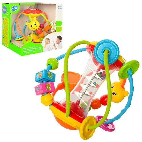Розвиваюча дитяча гра 929 Брязкальце-логіка - краща розвага для малят, здатна захопити дитину на довгі години. Ваш карапуз буде з ентузіазмом розглядати дрібні детальки, торохтіти брязкальцем, що стимулює базові навички, розвиває уважність і дрібну моторику. Іграшка виконана з міцного, нетоксичного пластика, який відрізняється першокласною якістю, не має в складі небезпечних хімічних компонентів, тому малюк не зашкодить собі, навіть якщо захоче спробувати брязкальце на смак. Безліч функцій, якими володіє представлена Вашій увазі модель, дозволяє дитині тренувати не тільки спритність пальчиків, але і хапальні рефлекси, візуальне і колірне сприйняття. Верхня частина брязкальця обладнана спеціальною кришталевою кулькою, який обертається, фішками різної форми і мініатюрним дзеркалом. Гра розміром 17 х 17 х 16 см позбавлена гострих кутів, і є абсолютно нешкідливою навіть для самих маленьких діток.