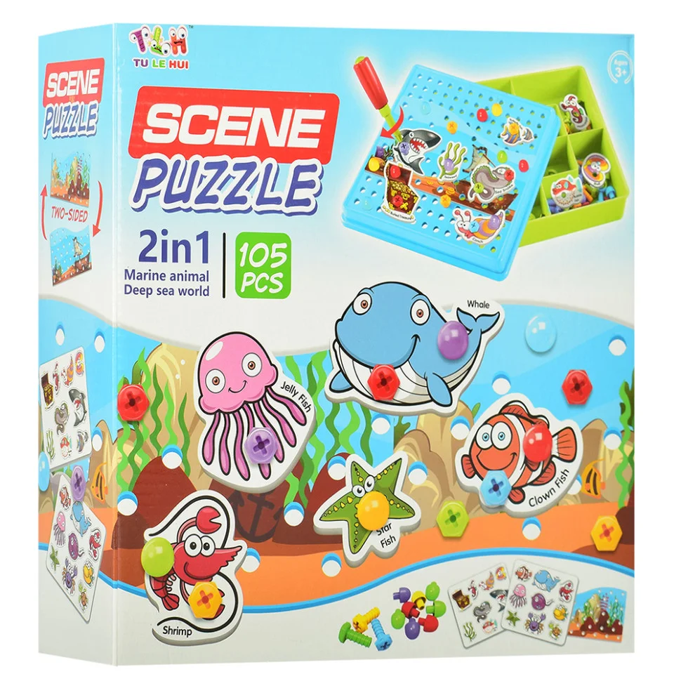Дитяча розвиваюча мозаїка на шурупах з викруткою TLH-0, 105 деталей Морські тварини