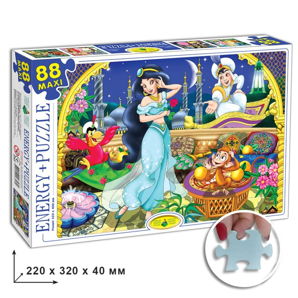 Захоплююча дитяча гра пазли 88, Арт.ЕГ-01. Аладдін 83279 - відмінний вибір в якості доповнення дозвілля Вашого маленького розумника. Призначений для дітей старше трьох років, барвистий набір допоможе Вашій дитині розвивати дрібну моторику рук, посприяє розширенню кругозору та поповненню словникового запасу. На прикладі тематичної колекції пазлів познайомте свого непосиду з цікавими казками, і його радості не буде меж. Цікавий дитячий пазл підійде для загального інтелектуального розвитку, поліпшення асоціативного і просторового мислення. Набір включає в себе 88 частин, з яких потрібно зібрати цілу картинку. Пазл розроблений у відповідності зі строгими нормами і вимогами до гігієнічності та якості, тому гра не зашкодить здоров'ю і не викличе алергії. Зберіть разом з дитиною яскраву кольорову картинку, проведіть час з інтересом і користю для своєї дитини.