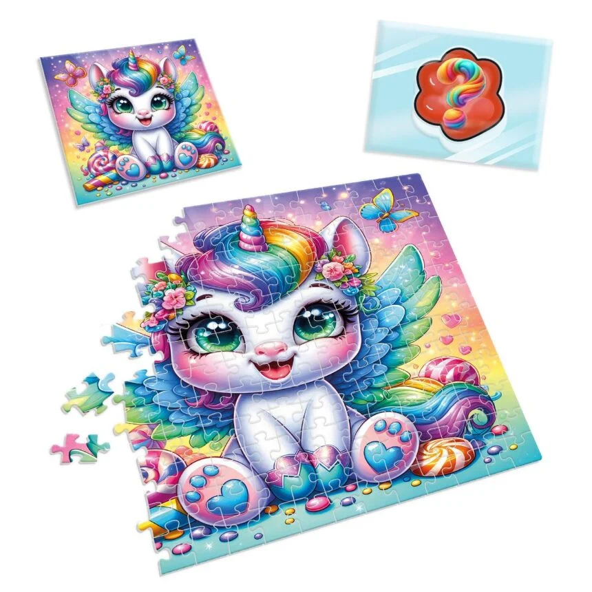 Гра розвиваюча пазли із сюрпризом “Єдиноріжка” VT8030-01 відкриває дитині казковий світ, де живе мила єдиноріжка з великими зеленими очима. Але магія на цьому не закінчується! Усередині коробки ховається сквіш-сюрприз — трендова іграшка, яку обожнюють діти. Дізнайся, який з цих м’якеньких сюрпризів чекає саме на тебе.