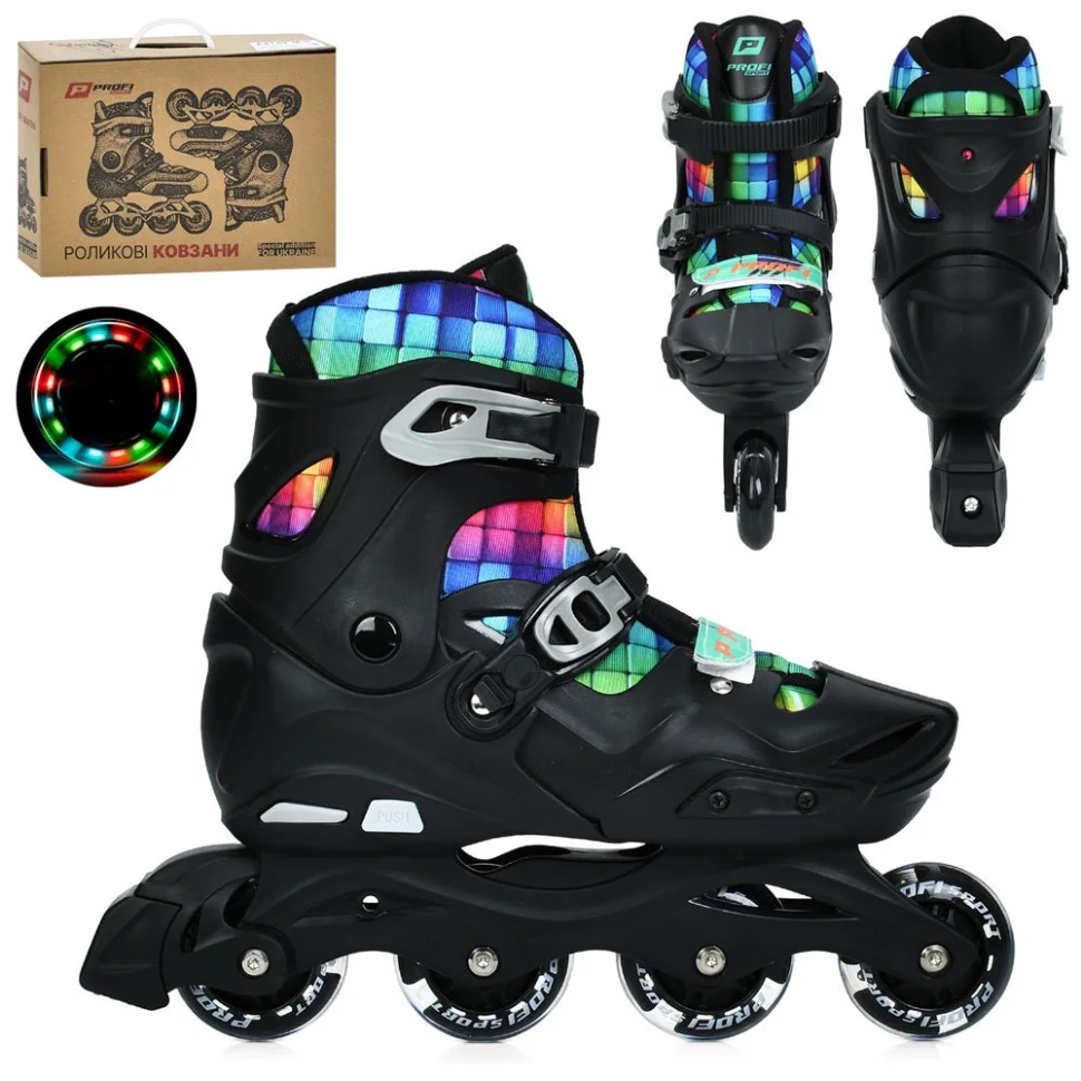 Сучасні ролики PROFI A4159 — це вдале поєднання стилю, безпеки та функціональності для активного катання. Модель з яскравим дизайном і підсвіткою коліс потішить підлітків і дорослих, забезпечивши комфорт і впевнену фіксацію ноги.