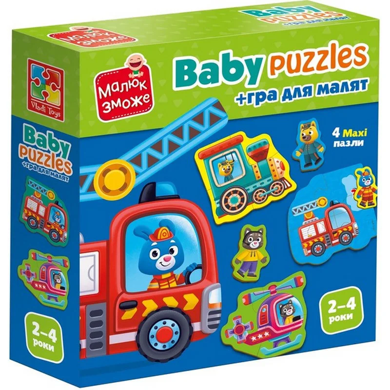 Комплектація: 4 пазлові картинки, 4 картонні фігурки.
