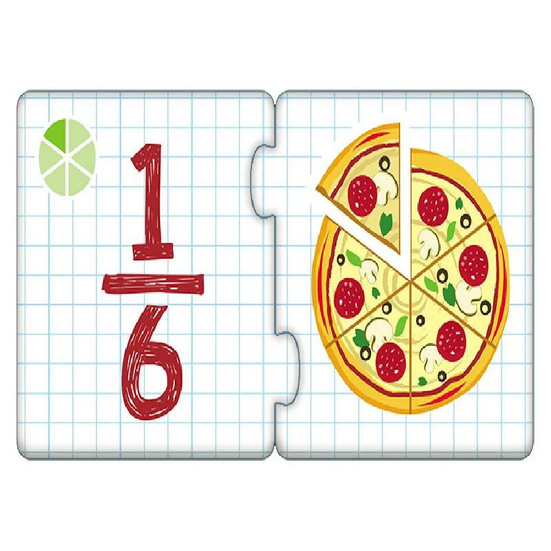Ця розвиваюча гра легко, весело і швидко навчить діточок розбиратися в частках і дробах. 6 пар (12 пазлів).