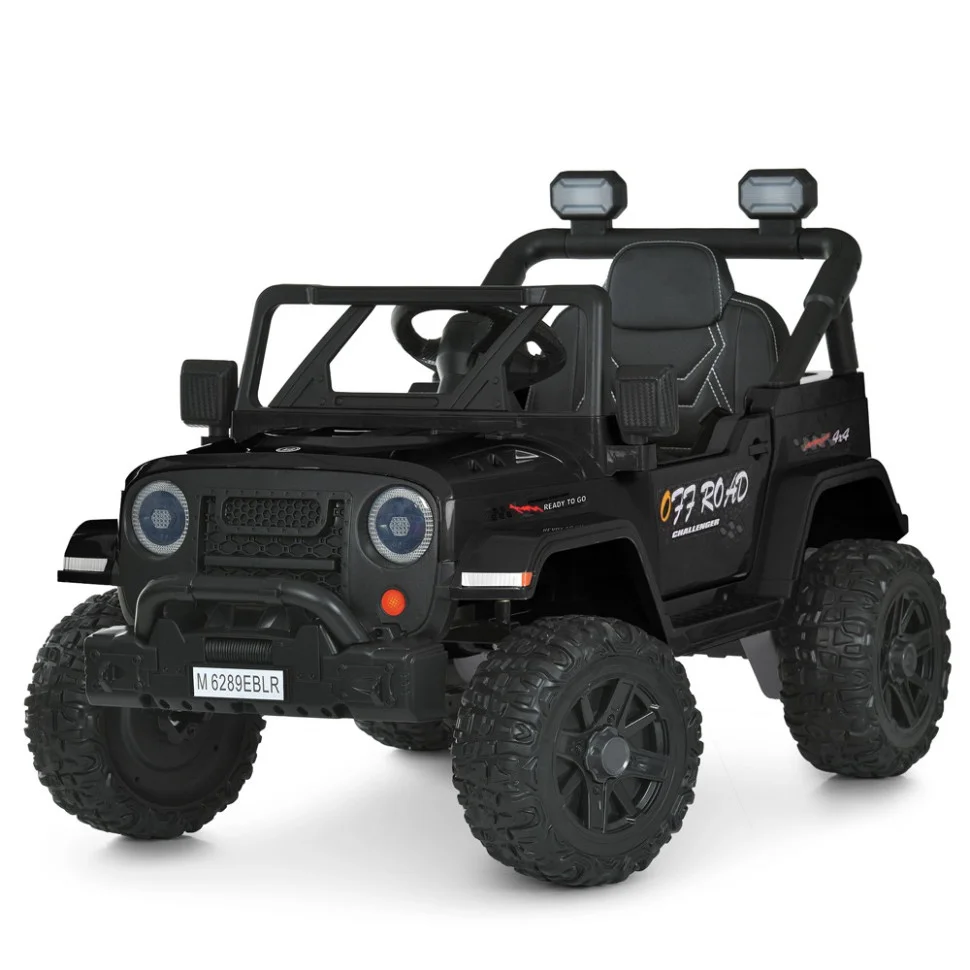 Дитячий електромобіль M 6289 EBLR оснащений двома моторами і акумулятором великої ємності, що забезпечує впевнений хід і тривале катання без частих підзарядок. Великі EVA колеса м'яко проходять нерівності, роблячи поїздку більш плавною і комфортною, а сидіння з чохлом з екошкіри додає зручності і приємних тактильних відчуттів. Світяться фари і вбудована магнітола з музикою створюють атмосферу справжньої пригоди і роблять кожну поїздку ще більш захоплюючою.