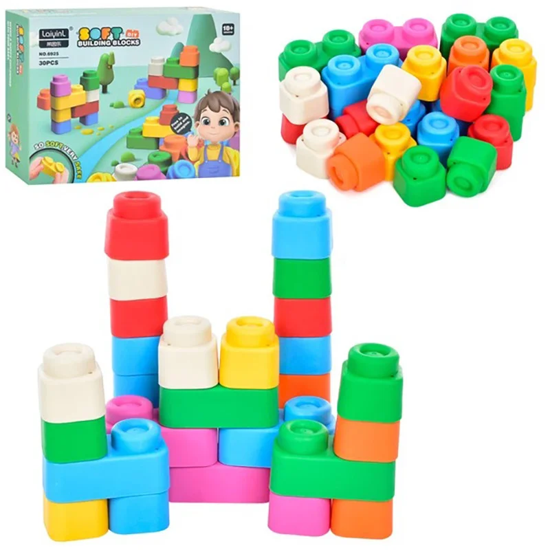 Ідеально для найменших: Завдяки м'якій текстурі та великому розміру, ці блоки чудово підходять навіть для малюків, які тільки починають свій шлях у світ ігор. Їх легко брати маленькими ручками.