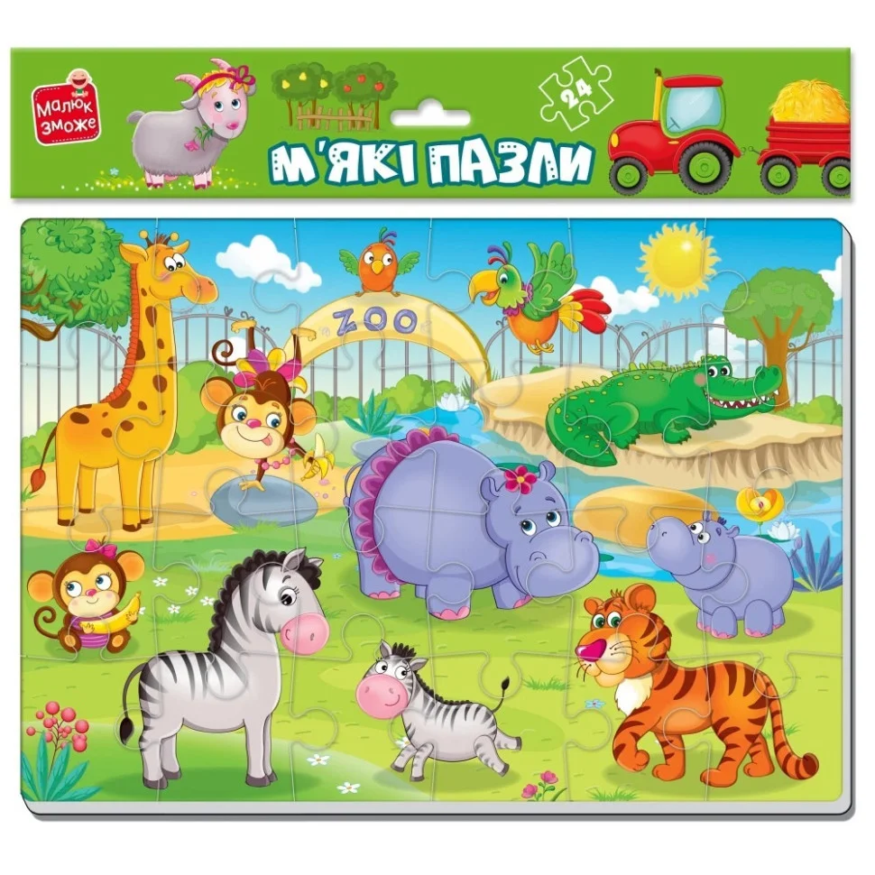 Складайте м'який пазл, щоб познайомитись з усіма тваринками зоопарку на зображенні. Маленькі ручки легко впораються з великими елементами.