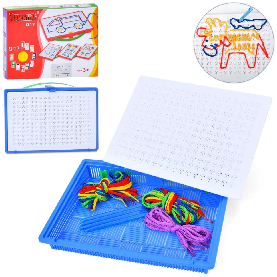 Дитячий набір для творчості "Шнурувальний планшет" - це захоплюючий і безпечний спосіб для малюків розвивати свої креативні здібності та дрібну моторику. Цей набір стане чудовим подарунком для дітей, які цікавляться рукоділлям і творчістю!
